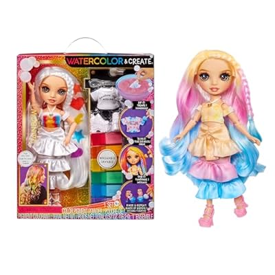 🇪🇸 RAINBOW HIGH Watercolour & Create DIY Muñeca de Moda con Acuarelas Lavables y Kit de Tinte - Ojos Marrones Pelo Rizado Top y Zapatos Extra - Colorea CREA Juega Aclara y Repite - Niños 4-12+ Años